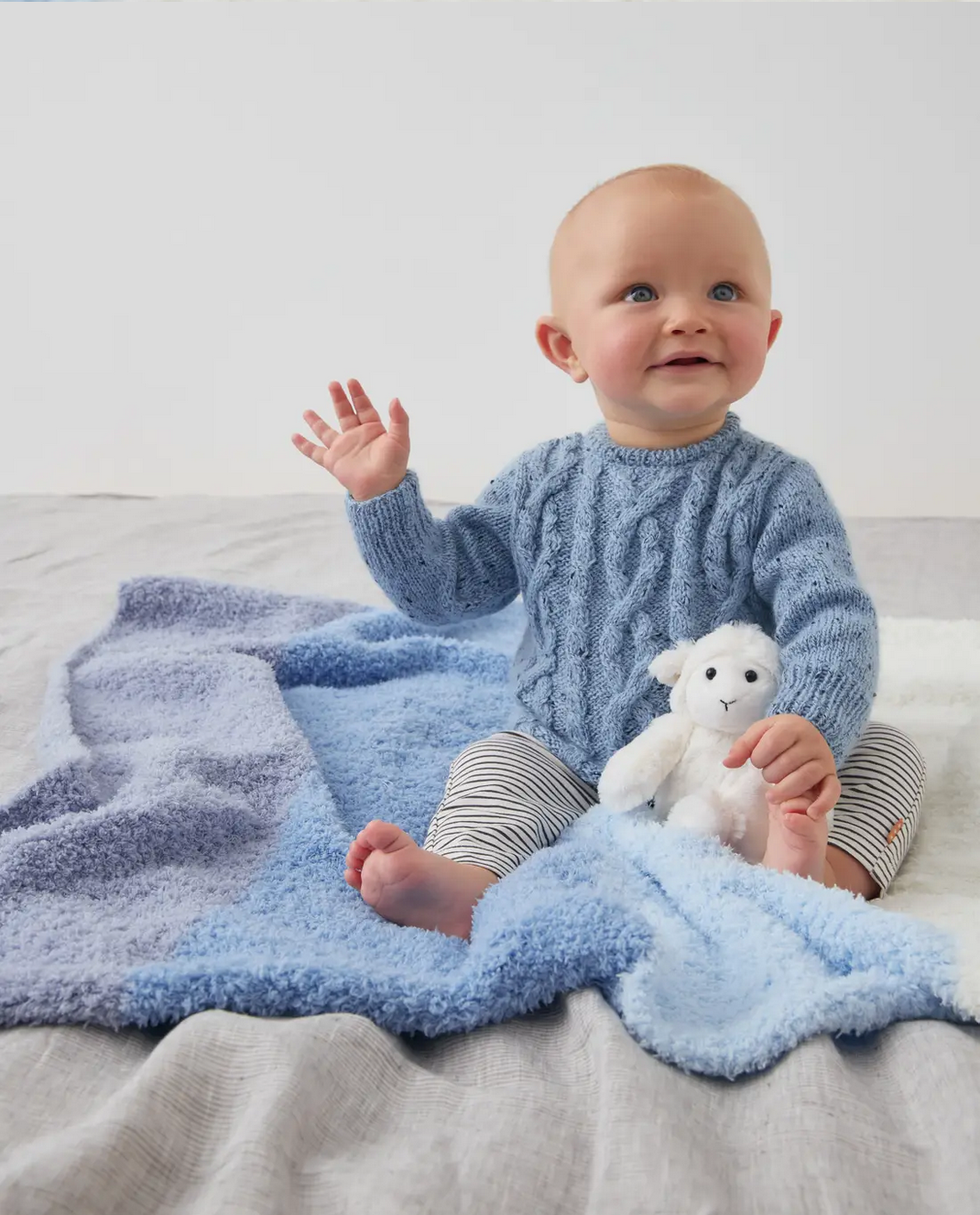 Et si vous réalisiez une jolie couverture colorée pour larrivée de bébé ? Cette maxi pelote de fil à tricoter layette est fournie avec un doudou MOUTON tout doux et avec les explications au dos de la bande pour réaliser votre couverture de taille 100 X 90 cm.