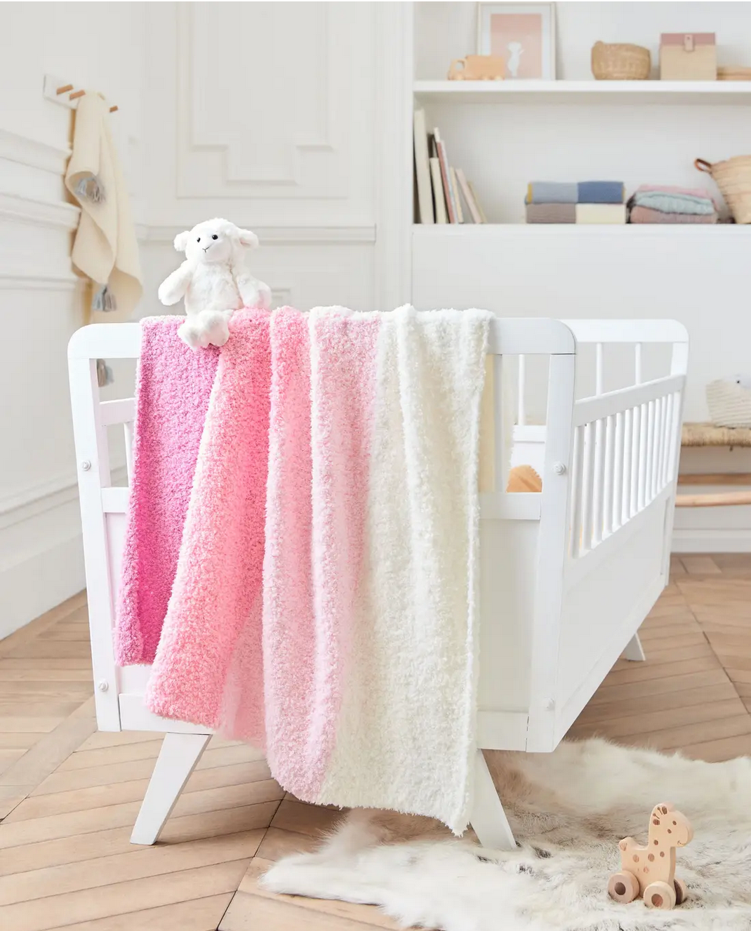 Et si vous réalisiez une jolie couverture colorée pour larrivée de bébé ? Cette maxi pelote de fil à tricoter layette est fournie avec un doudou MOUTON tout doux et avec les explications au dos de la bande pour réaliser votre couverture de taille 100 X 90 cm.