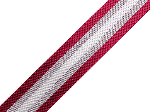 Cette jolie sangle à rayures rouge pailletée argent vous permettra de confectionner des anses de sacs tendance et lumineuses.